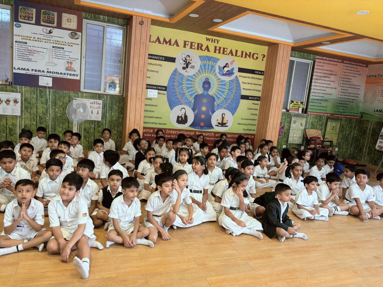 Photo Gallery >> Meditation session for DELHI PUBLIC SCHOOL lovely 280 kids @Lama Fera Monastery, Pune, conducted by SARA