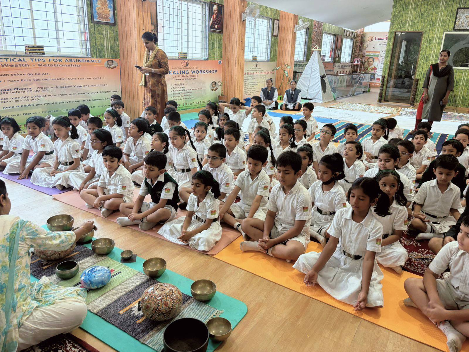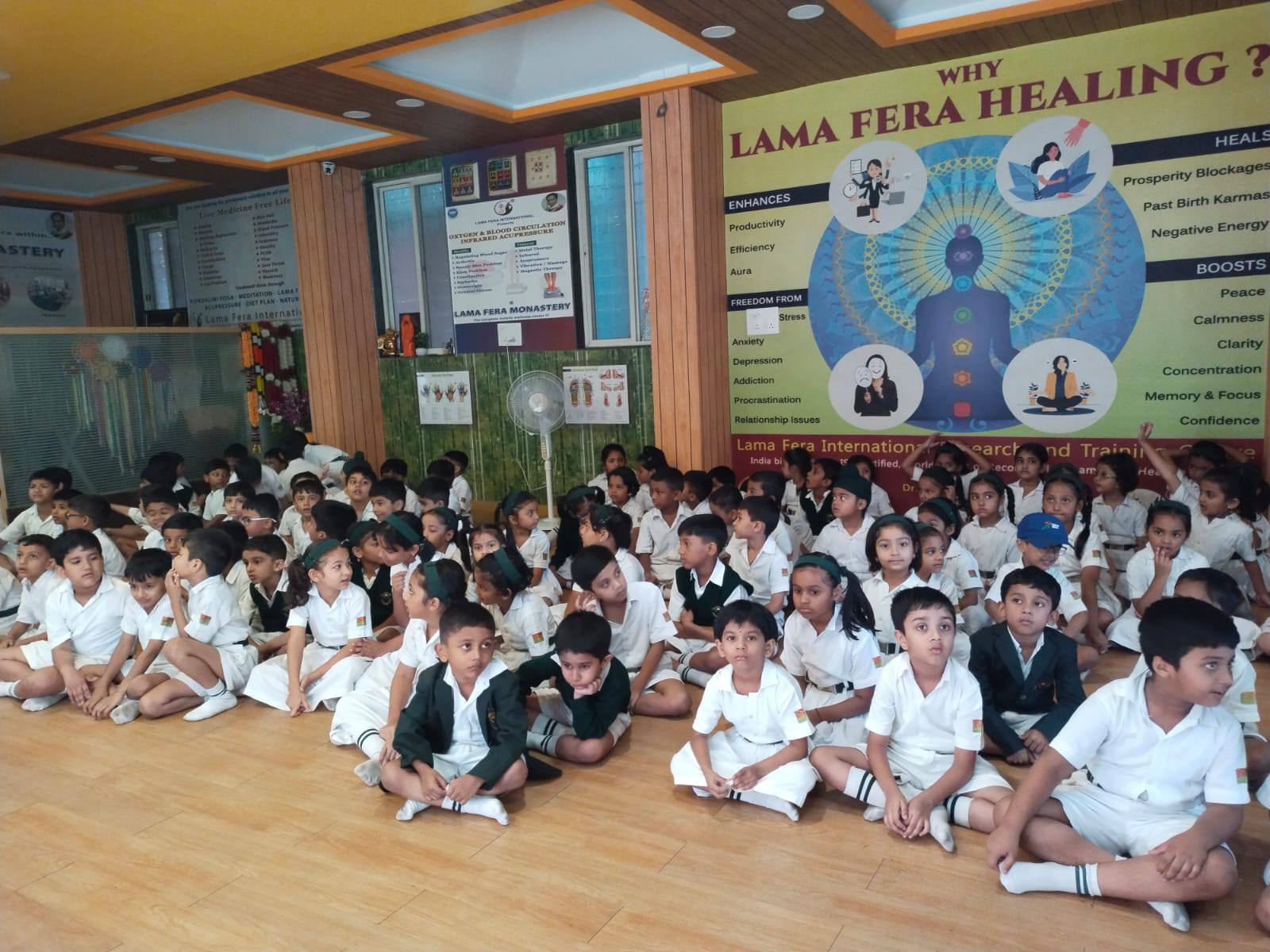 Photo Gallery >> Meditation session for DELHI PUBLIC SCHOOL lovely 280 kids @Lama Fera Monastery, Pune, conducted by SARA